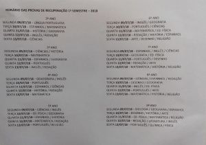 Atenção para o horário das recuperações do primeiro semestre de 2018